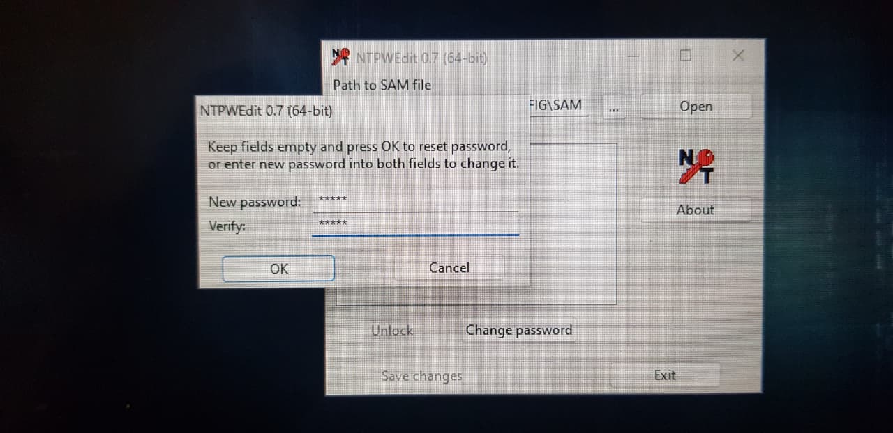 Kalau sudah, bisa klik "Ok" lalu klik "Save changes" lalu keluar dan Restart kembali. Setelah itu silahkan anda coba di OS Windows target lalu masuk dengan password yang anda ubah tadi, maka akan langsung masuk ke dalam desktop target dan mulai eksplor data data nya. Cukup sekian dari saya kurang lebih nya mohon maaf dan sampai jumpa.